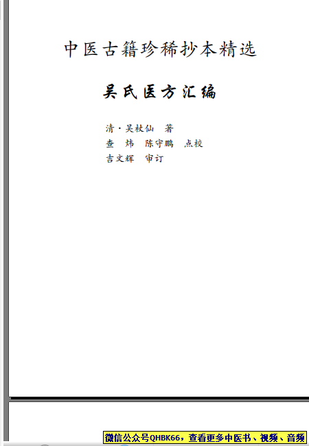 本站专注中医资源,涵盖视频,音频,电子文档等等等……关注微信公众号【QHBK66】,回复对应编码,获网盘下载地址。