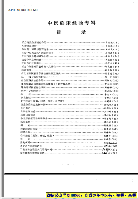 中医临床经验专辑本站专注中医资源,涵盖视频,音频,电子文档等等等……关注微信公众号【QHBK66】,回复对应编码,获网盘下载地址。 更多中医视频,音频,电子书等《中医超级资源库》目录,查看网址:https://qr09.cn/FDjI4p