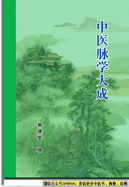 中医脉学大成本站专注中医资源,涵盖视频,音频,电子文档等等等……关注微信公众号【QHBK66】,回复对应编码,获网盘下载地址。 更多中医视频,音频,电子书等《中医超级资源库》目录,查看网址:https://qr09.cn/FDjI4p
