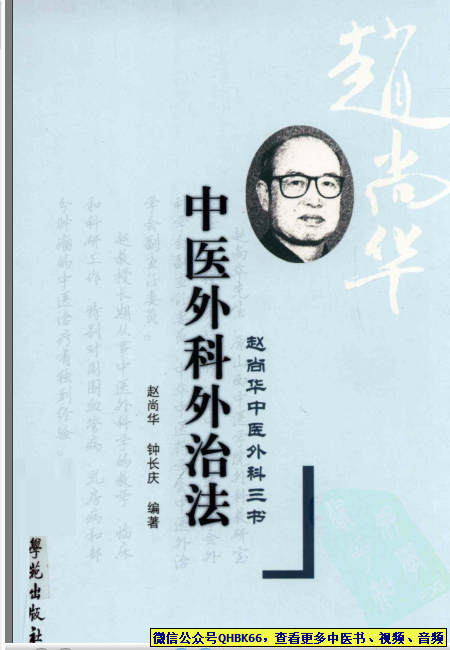 中医外科外治法(超清版)本站专注中医资源,涵盖视频,音频,电子文档等等等……关注微信公众号【QHBK66】,回复对应编码,获网盘下载地址。 更多中医视频,音频,电子书等《中医超级资源库》目录,查看网址:https://qr09.cn/FDjI4p