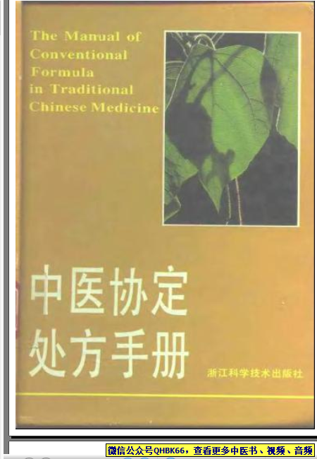 中医协定处方手册本站专注中医资源,涵盖视频,音频,电子文档等等等……关注微信公众号【QHBK66】,回复对应编码,获网盘下载地址。 更多中医视频,音频,电子书等《中医超级资源库》目录,查看网址:https://qr09.cn/FDjI4p