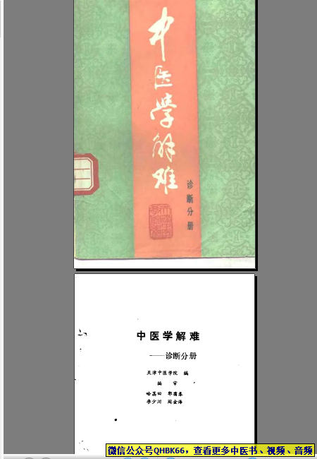 中医学解难——诊断分册本站专注中医资源,涵盖视频,音频,电子文档等等等……关注微信公众号【QHBK66】,回复对应编码,获网盘下载地址。 更多中医视频,音频,电子书等《中医超级资源库》目录,查看网址:https://qr09.cn/FDjI4p