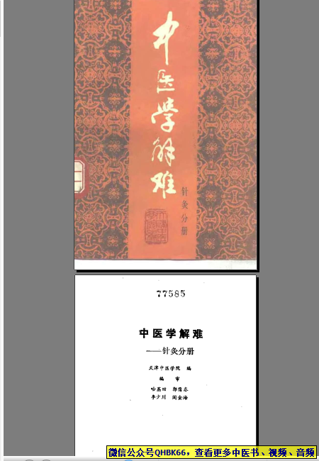 中医学解难——针灸分册本站专注中医资源,涵盖视频,音频,电子文档等等等……关注微信公众号【QHBK66】,回复对应编码,获网盘下载地址。 更多中医视频,音频,电子书等《中医超级资源库》目录,查看网址:https://qr09.cn/FDjI4p