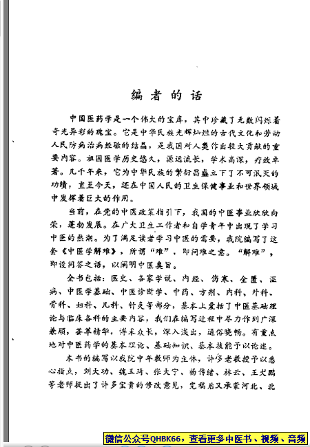 中医学解难——中基分册本站专注中医资源,涵盖视频,音频,电子文档等等等……关注微信公众号【QHBK66】,回复对应编码,获网盘下载地址。 更多中医视频,音频,电子书等《中医超级资源库》目录,查看网址:https://qr09.cn/FDjI4p