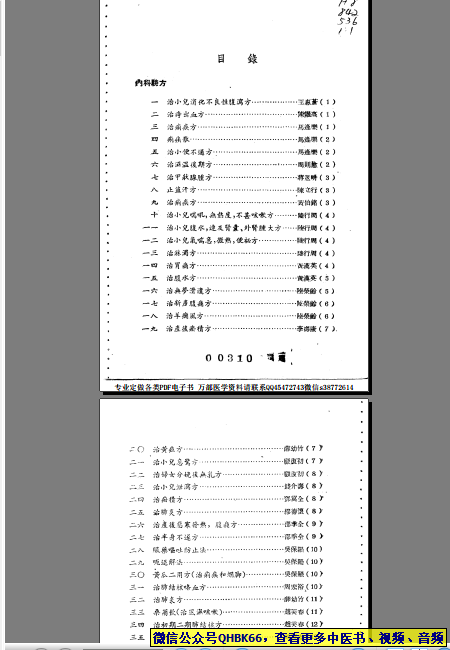 中医验方交流集本站专注中医资源,涵盖视频,音频,电子文档等等等……关注微信公众号【QHBK66】,回复对应编码,获网盘下载地址。 更多中医视频,音频,电子书等《中医超级资源库》目录,查看网址:https://qr09.cn/FDjI4p
