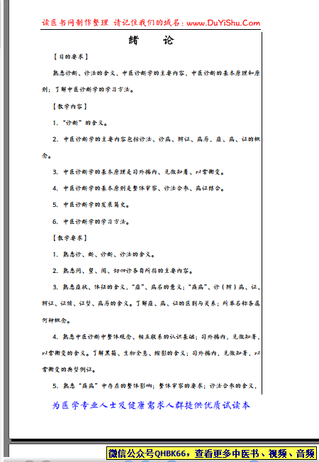 中医诊断学72学时讲稿2本站专注中医资源,涵盖视频,音频,电子文档等等等……关注微信公众号【QHBK66】,回复对应编码,获网盘下载地址。 更多中医视频,音频,电子书等《中医超级资源库》目录,查看网址:https://qr09.cn/FDjI4p
