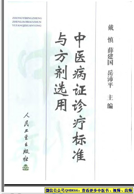 中医诊疗标准与方剂本站专注中医资源,涵盖视频,音频,电子文档等等等……关注微信公众号【QHBK66】,回复对应编码,获网盘下载地址。 更多中医视频,音频,电子书等《中医超级资源库》目录,查看网址:https://qr09.cn/FDjI4p