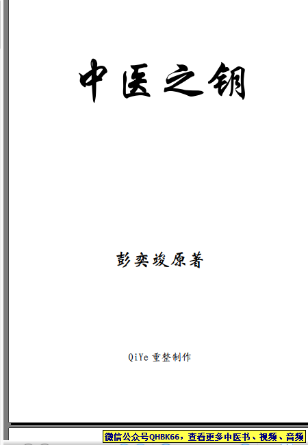 中医之钥修正版本站专注中医资源,涵盖视频,音频,电子文档等等等……关注微信公众号【QHBK66】,回复对应编码,获网盘下载地址。 更多中医视频,音频,电子书等《中医超级资源库》目录,查看网址:https://qr09.cn/FDjI4p