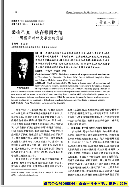 周楣声对针灸事业的贡献:桑榆虽晚.终存报国之情