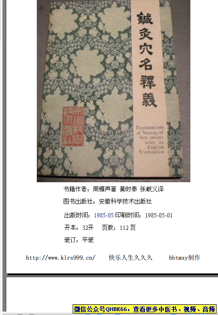 周楣声:针灸穴名释义(附英译文)