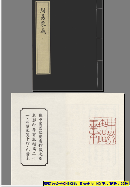 周易象义 元刻本本站专注中医资源,涵盖视频,音频,电子文档等等等……关注微信公众号【QHBK66】,回复对应编码,获网盘下载地址。 更多中医视频,音频,电子书等《中医超级资源库》目录,查看网址:https://qr09.cn/FDjI4p