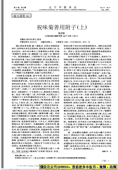 祝味菊善用附子上本站专注中医资源,涵盖视频,音频,电子文档等等等……关注微信公众号【QHBK66】,回复对应编码,获网盘下载地址。 更多中医视频,音频,电子书等《中医超级资源库》目录,查看网址:https://qr09.cn/FDjI4p