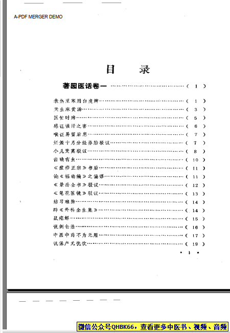 著园医药合刊本站专注中医资源,涵盖视频,音频,电子文档等等等……关注微信公众号【QHBK66】,回复对应编码,获网盘下载地址。 更多中医视频,音频,电子书等《中医超级资源库》目录,查看网址:https://qr09.cn/FDjI4p