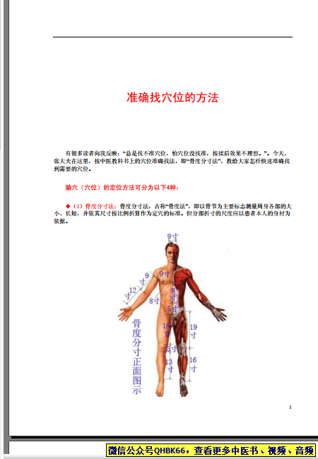 准确找雪位的方法本站专注中医资源,涵盖视频,音频,电子文档等等等……关注微信公众号【QHBK66】,回复对应编码,获网盘下载地址。 更多中医视频,音频,电子书等《中医超级资源库》目录,查看网址:https://qr09.cn/FDjI4p