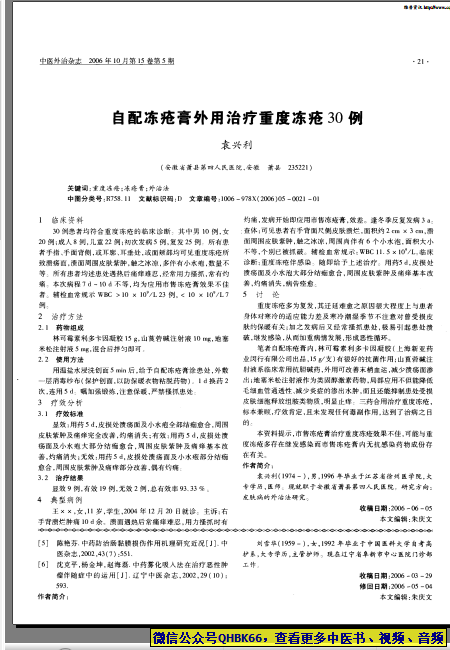 自配冻疮膏外用治疗重度冻疮30例