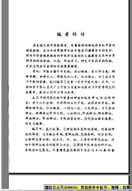 本站专注中医资源,涵盖视频,音频,电子文档等等等……关注微信公众号【QHBK66】,回复对应编码,获网盘下载地址。