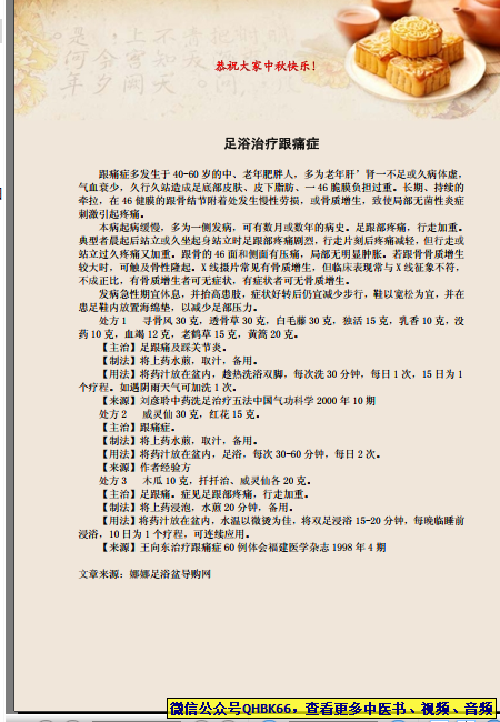 足浴治疗跟痛症本站专注中医资源,涵盖视频,音频,电子文档等等等……关注微信公众号【QHBK66】,回复对应编码,获网盘下载地址。 更多中医视频,音频,电子书等《中医超级资源库》目录,查看网址:https://qr09.cn/FDjI4p