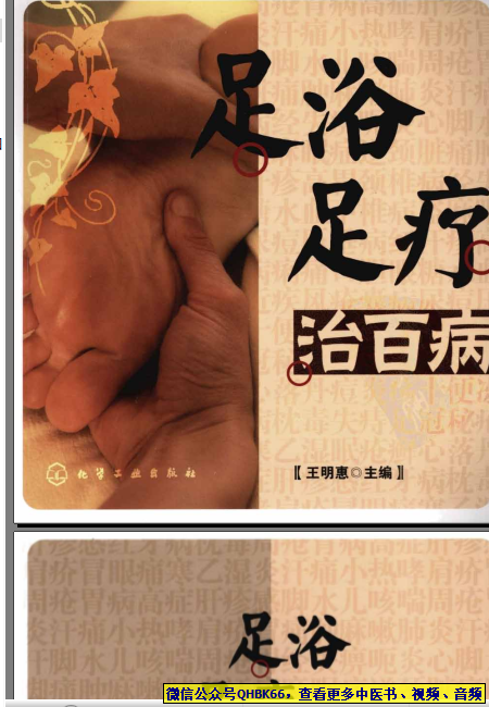 足浴足疗治百病本站专注中医资源,涵盖视频,音频,电子文档等等等……关注微信公众号【QHBK66】,回复对应编码,获网盘下载地址。 更多中医视频,音频,电子书等《中医超级资源库》目录,查看网址:https://qr09.cn/FDjI4p