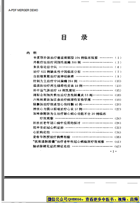 最近十年中医临床经验精华本站专注中医资源,涵盖视频,音频,电子文档等等等……关注微信公众号【QHBK66】,回复对应编码,获网盘下载地址。 更多中医视频,音频,电子书等《中医超级资源库》目录,查看网址:https://qr09.cn/FDjI4p