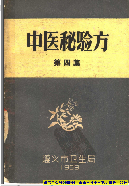 遵义中医验方本站专注中医资源,涵盖视频,音频,电子文档等等等……关注微信公众号【QHBK66】,回复对应编码,获网盘下载地址。 更多中医视频,音频,电子书等《中医超级资源库》目录,查看网址:https://qr09.cn/FDjI4p