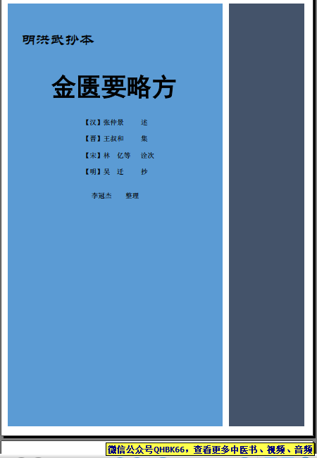 金匮要略吴迁本终版本站专注中医资源,涵盖视频,音频,电子文档等等等……关注微信公众号【QHBK66】,回复对应编码,获网盘下载地址。 更多中医视频,音频,电子书等《中医超级资源库》目录,查看网址:https://qr09.cn/FDjI4p