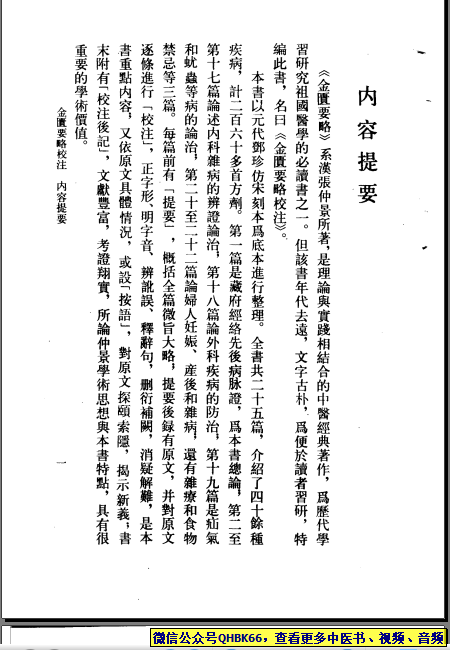 金匮要略校注本站专注中医资源,涵盖视频,音频,电子文档等等等……关注微信公众号【QHBK66】,回复对应编码,获网盘下载地址。 更多中医视频,音频,电子书等《中医超级资源库》目录,查看网址:https://qr09.cn/FDjI4p