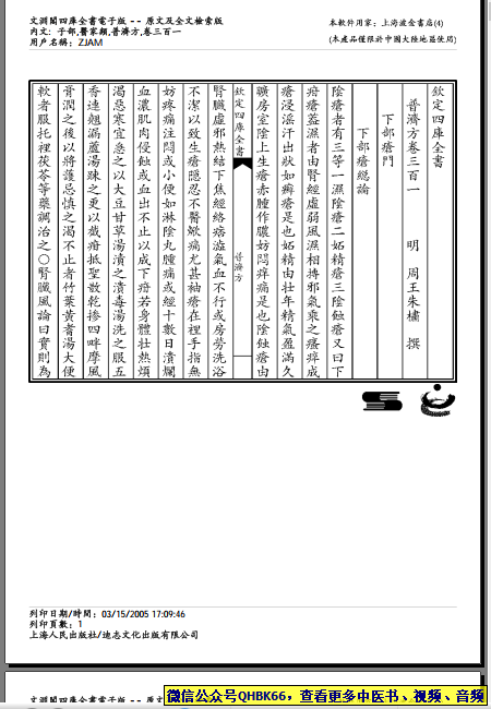普济方-301本站专注中医资源,涵盖视频,音频,电子文档等等等……关注微信公众号【QHBK66】,回复对应编码,获网盘下载地址。 更多中医视频,音频,电子书等《中医超级资源库》目录,查看网址:https://qr09.cn/FDjI4p