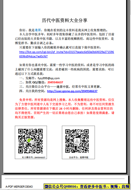 本站专注中医资源,涵盖视频,音频,电子文档等等等……关注微信公众号【QHBK66】,回复对应编码,获网盘下载地址。