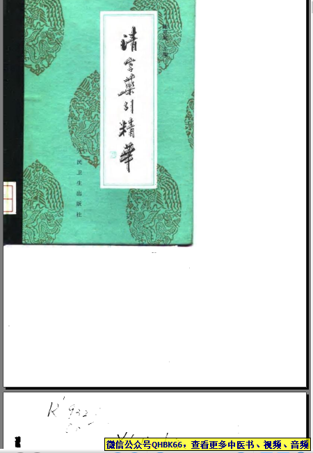 清宫药引精华本站专注中医资源,涵盖视频,音频,电子文档等等等……关注微信公众号【QHBK66】,回复对应编码,获网盘下载地址。 更多中医视频,音频,电子书等《中医超级资源库》目录,查看网址:https://qr09.cn/FDjI4p