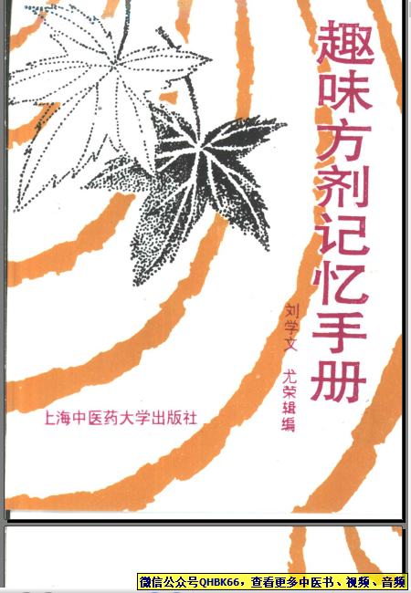 趣味方剂记忆手册本站专注中医资源,涵盖视频,音频,电子文档等等等……关注微信公众号【QHBK66】,回复对应编码,获网盘下载地址。 更多中医视频,音频,电子书等《中医超级资源库》目录,查看网址:https://qr09.cn/FDjI4p