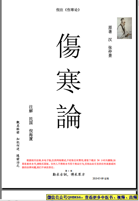 人纪 《伤寒论》本站专注中医资源,涵盖视频,音频,电子文档等等等……关注微信公众号【QHBK66】,回复对应编码,获网盘下载地址。 更多中医视频,音频,电子书等《中医超级资源库》目录,查看网址:https://qr09.cn/FDjI4p