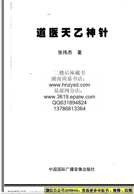 张伟杰_道医天乙神针本站专注中医资源,涵盖视频,音频,电子文档等等等……关注微信公众号【QHBK66】,回复对应编码,获网盘下载地址。 更多中医视频,音频,电子书等《中医超级资源库》目录,查看网址:https://qr09.cn/FDjI4p