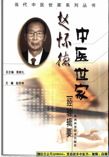 赵怀德中医世家经验辑要本站专注中医资源,涵盖视频,音频,电子文档等等等……关注微信公众号【QHBK66】,回复对应编码,获网盘下载地址。 更多中医视频,音频,电子书等《中医超级资源库》目录,查看网址:https://qr09.cn/FDjI4p