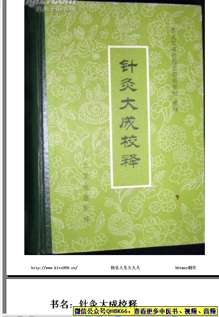 针灸大成校释---[注:进中医万人群交流 +威信:QHBK2008 ]
