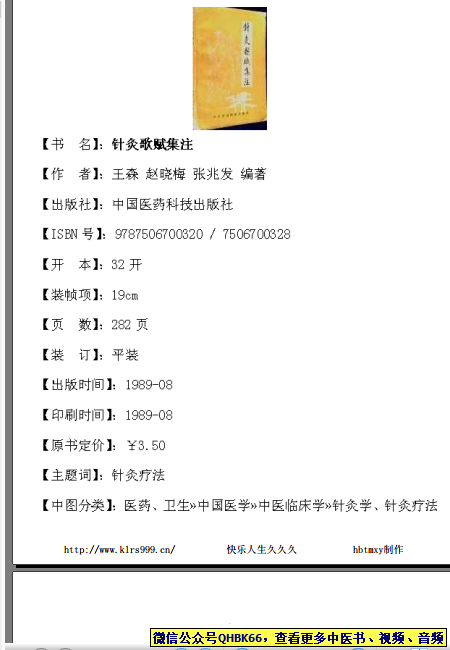 针灸歌赋集注(王森)本站专注中医资源,涵盖视频,音频,电子文档等等等……关注微信公众号【QHBK66】,回复对应编码,获网盘下载地址。 更多中医视频,音频,电子书等《中医超级资源库》目录,查看网址:https://qr09.cn/FDjI4p
