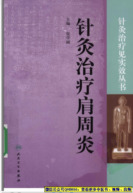 针灸治疗肩周炎(超清版)本站专注中医资源,涵盖视频,音频,电子文档等等等……关注微信公众号【QHBK66】,回复对应编码,获网盘下载地址。 更多中医视频,音频,电子书等《中医超级资源库》目录,查看网址:https://qr09.cn/FDjI4p