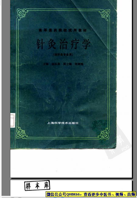 针灸治疗学(第五版)本站专注中医资源,涵盖视频,音频,电子文档等等等……关注微信公众号【QHBK66】,回复对应编码,获网盘下载地址。 更多中医视频,音频,电子书等《中医超级资源库》目录,查看网址:https://qr09.cn/FDjI4p
