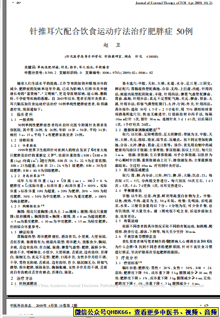 针推耳穴配合饮食运动疗法治疗肥胖症50例(1)