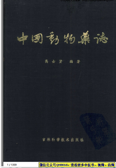 中国动物药志(高士贤)本站专注中医资源,涵盖视频,音频,电子文档等等等……关注微信公众号【QHBK66】,回复对应编码,获网盘下载地址。 更多中医视频,音频,电子书等《中医超级资源库》目录,查看网址:https://qr09.cn/FDjI4p